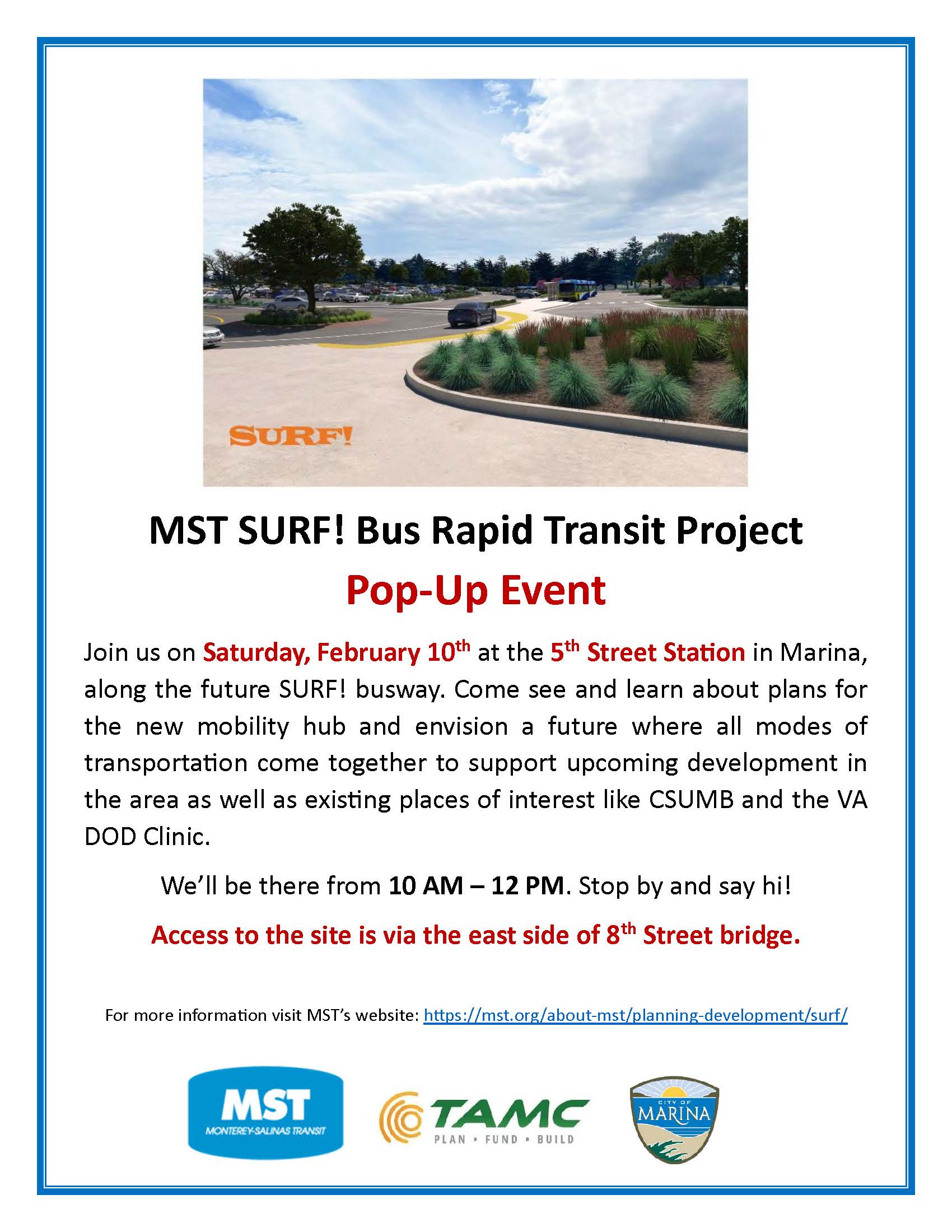 5th Street Station 5th Street, Marina, CALearn more about the SURF! line at MST's pop-up event!